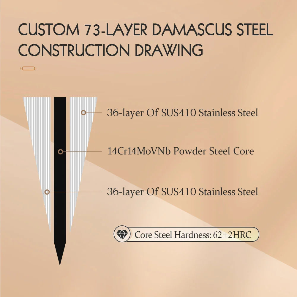 🔪 73-Layer Powder Damascus Steel: Combines strength, flexibility, and beauty with an intricate layered finish