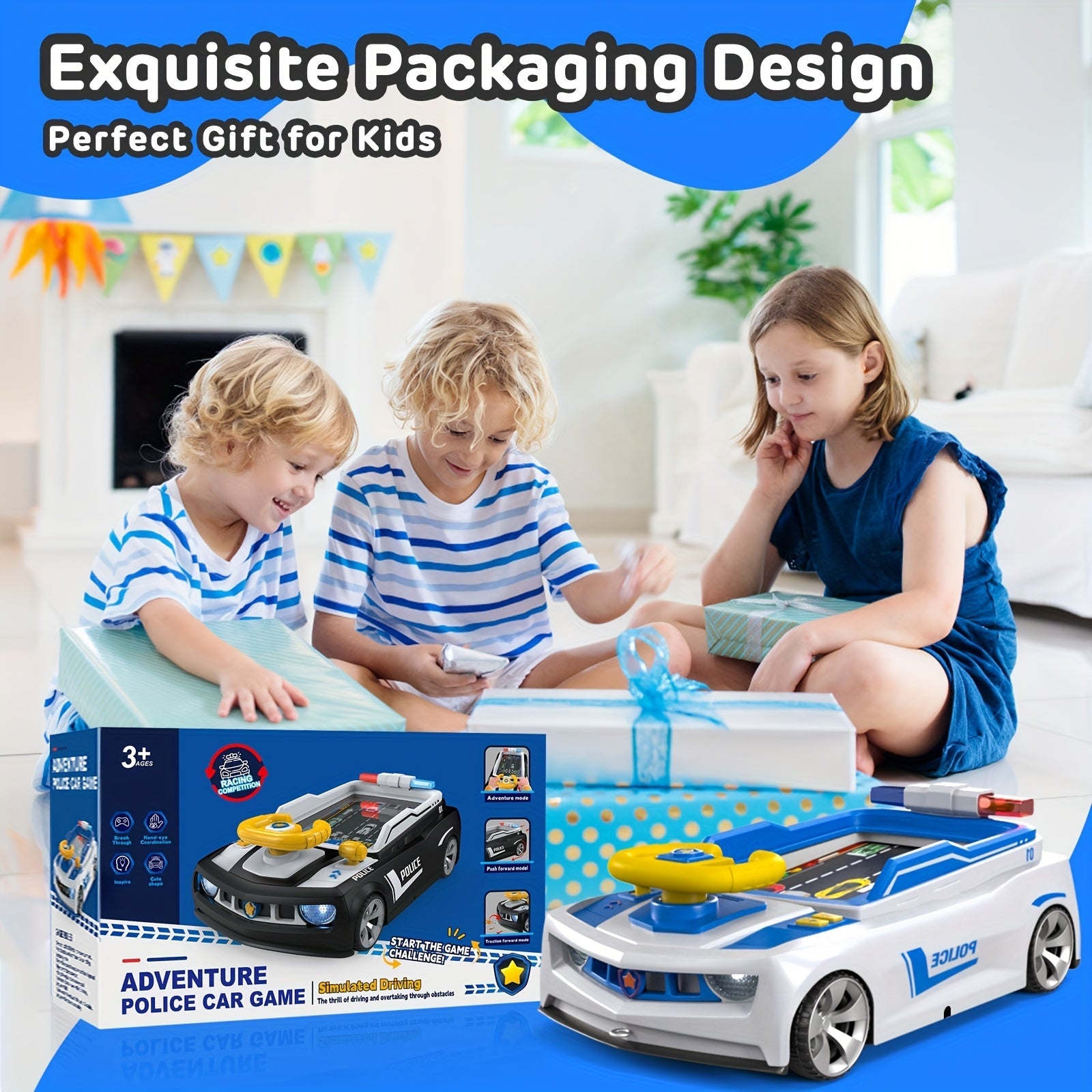 The  CarPlay Suction Racing Game Console is designed to entertain and engage children aged 3 and above with interactive steering, dual-mode music, and light features. This white police-themed car game console is equipped with a USB rechargeable system and a crank operation mode, eliminating the need for external batteries. Refer to the image for full dimensions and details. It’s an ideal gift for birthdays or holidays, offering screen-free fun that promotes imaginative play and motor skill development.