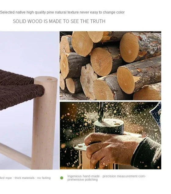 Hand-Woven Wooden Shoe Changing Stool - Beige Pine Stool with Non-Slip Surface