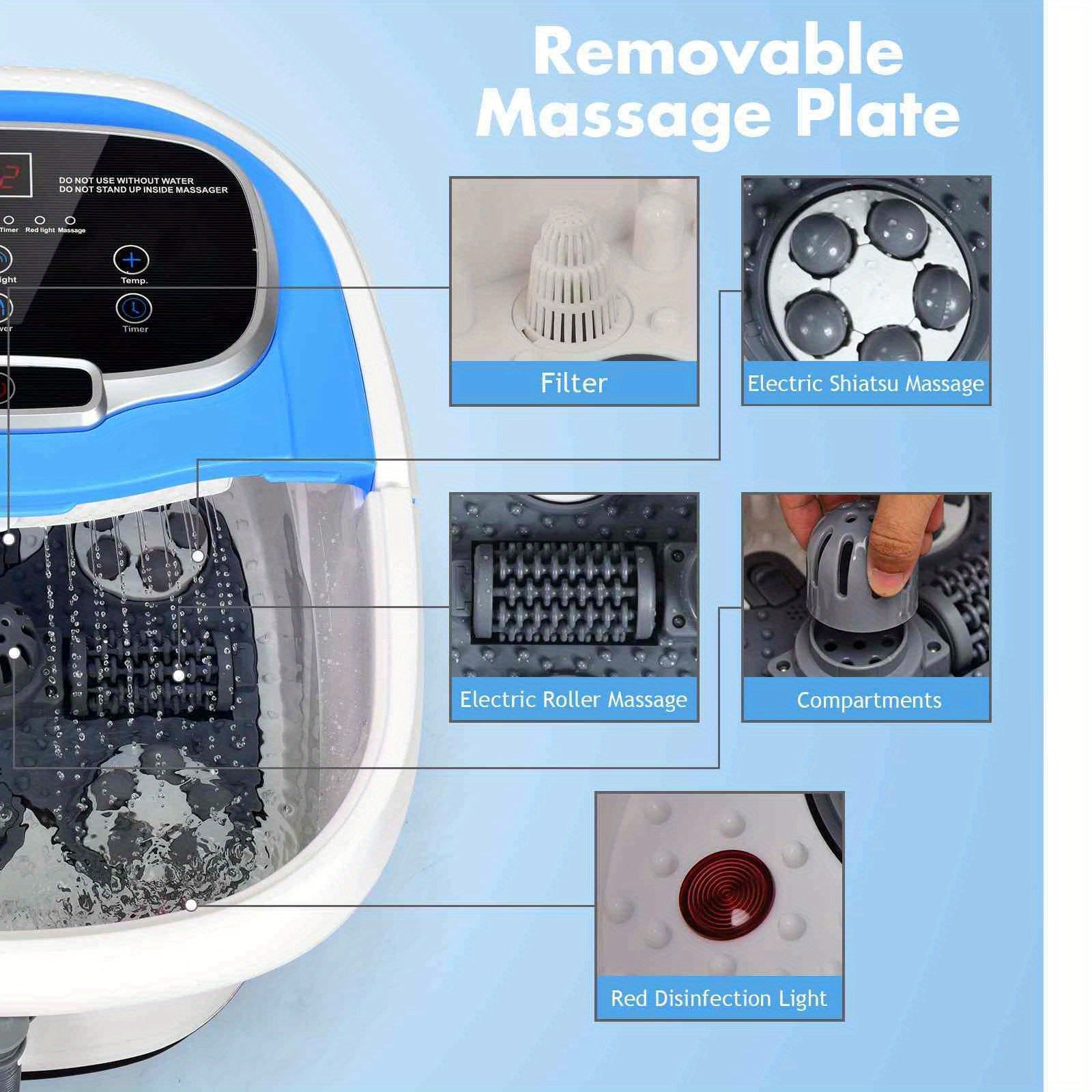 Indulge in a complete foot spa experience with the Electric Heated Footbath Tub, featuring adjustable shower settings, a removable massage plate, and smart temperature control for ultimate relaxation.