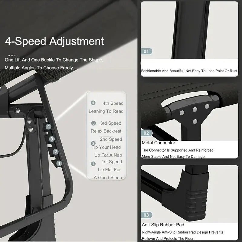 The  Folding Sun Lounge Bed is built for versatile outdoor relaxation. Its iron frame and breathable Oxford fabric provide durability and comfort, while supporting up to 150 kg. With adjustable reclining positions, you can lock the bed at your preferred angle for optimal rest. This lounge bed requires no assembly—just unfold and enjoy. Its foldable design makes it easy to carry and store, perfect for use by the pool, on the lawn, in the garden, or during travel.