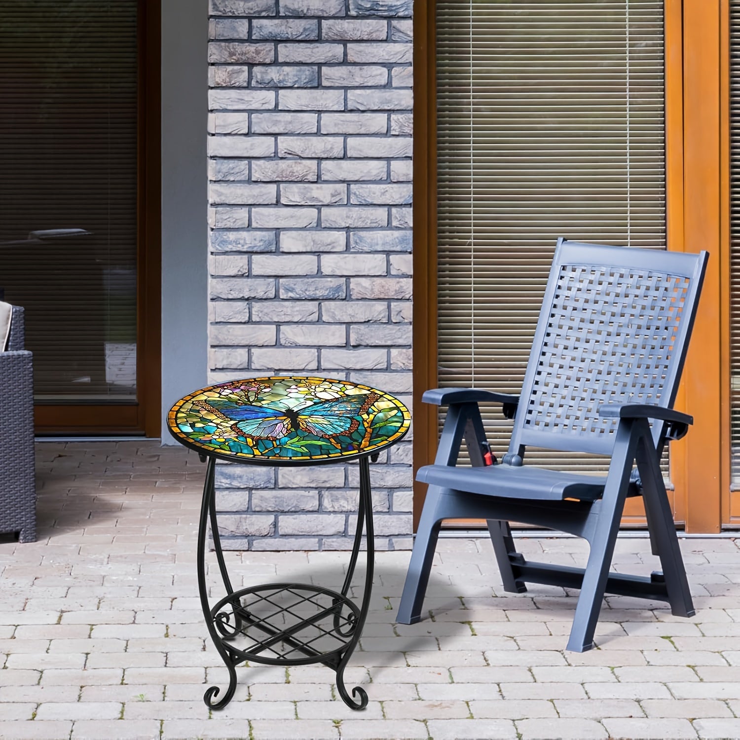 The  Metal Side Table adds both charm and functionality to your space, indoors or outdoors. Whether placed in your living room, garden, or balcony, it serves perfectly as a coffee table, plant stand, or decorative accent. Its butterfly mosaic design and pedestal base create a timeless look that complements various settings.