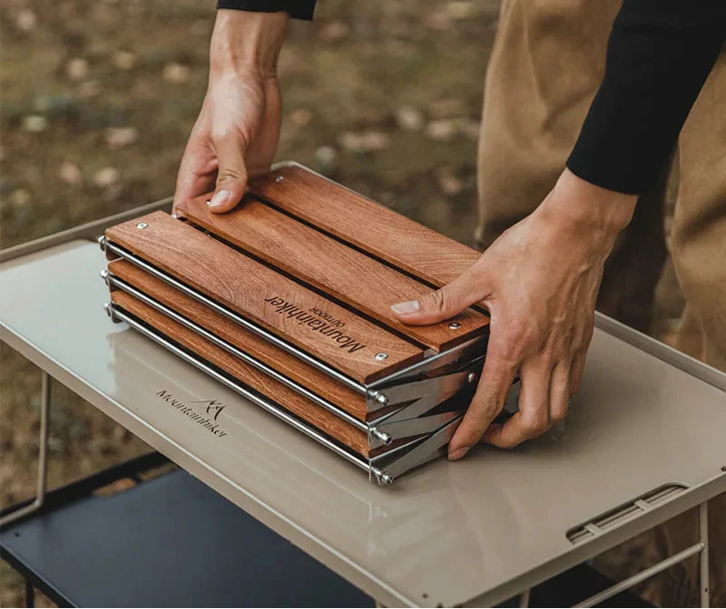 Designed for the organized adventurer, this Portable 3-Tier Camping Rack brings functionality and natural charm to your outdoor experience. Crafted from rich, durable sapele wood with a stainless steel frame, this foldable rack is ideal for keeping utensils, cookware, and food essentials neatly arranged during camping, picnics, or barbecues.