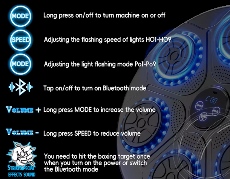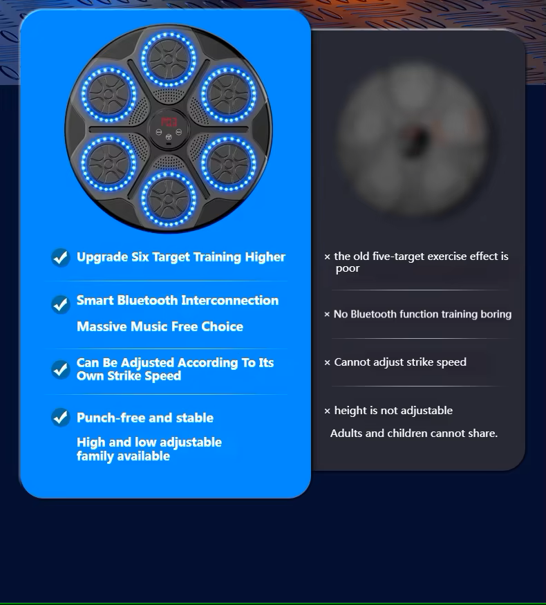 Elevate your boxing workout with our Smart Music Boxing Machine! Featuring Bluetooth connectivity, real-time performance tracking, and high-quality impact resistance, this wall-mounted target provides an engaging way to enhance your reaction time, strength, and overall fitness. Ideal for stress relief and versatile training.