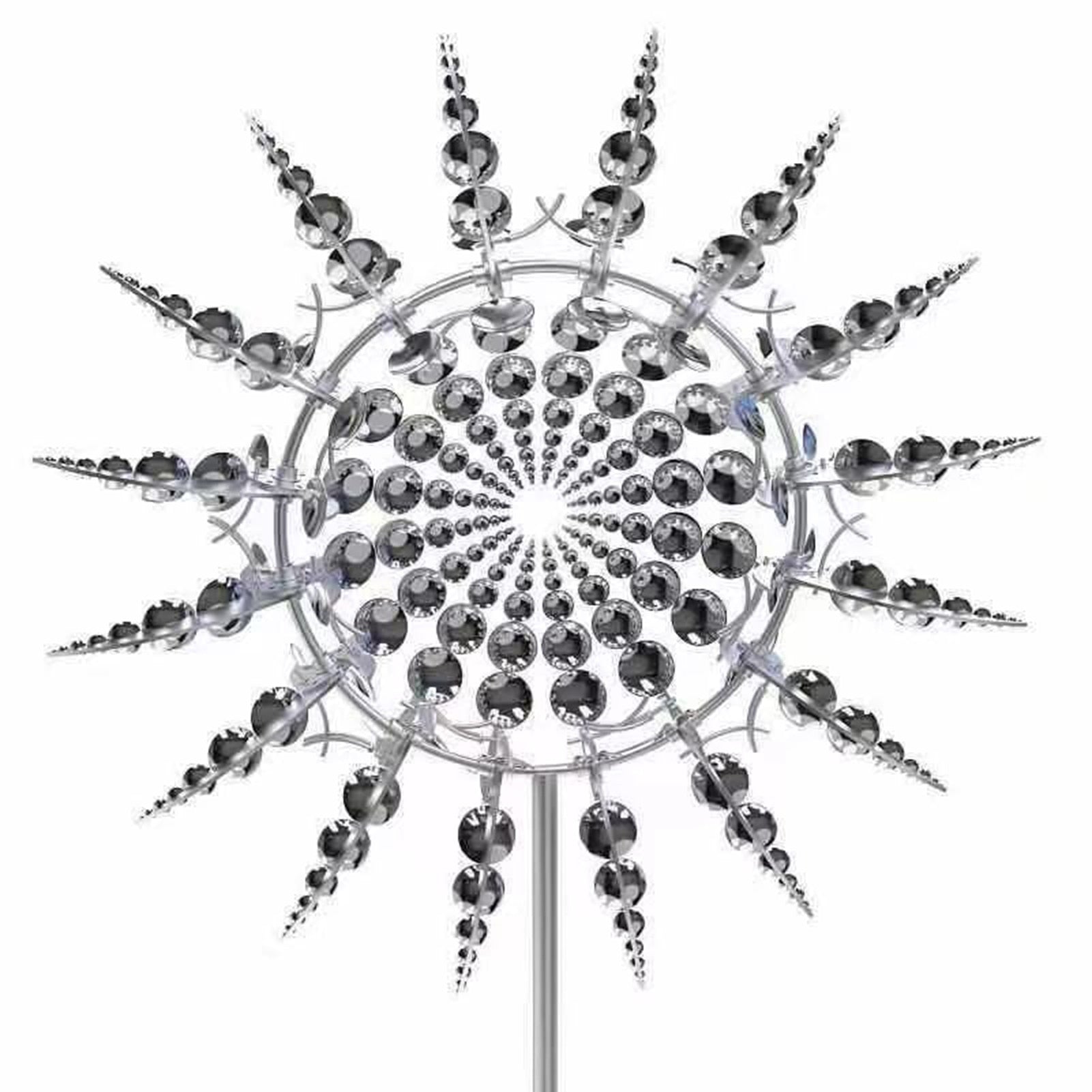 1.Special Design Perfect Garden Decoration: Each blade of this yard spinner is designed to spin in different directions, ball bearing construction allows our wind catcher to quietly spin even in the slightest breeze.2.LIGHT UP YOUR GARDEN WITH SEASONAL COLOR AND IMPRESS YOUR NEIGHBORS: Easily seen and admired by passers-by but not intrusive to neighbors. Relaxing to watch while spending time in out on the sun porch or yard. Would look amazing in any.3.STABLE, STURDY WITH MODERN FUNCTIONALITY & ANTIQUE CHARM: Many wind spinners outdoor come with a single blade that spins in one direction. Our solar wind spinner has a solid metallic construction with dual wind motion. The two tiers blades smoothly rotate in opposite directions on sealed bearings. Featuring modern functionality with period charm, our durable yard wind spinners have a stability stake at the base to ensure its firmly planted for windy days.4.EASY TO INSTALL: This gardening decoration is easy to assemble with the instructions and no additional wiring, just simply position it in a sunny location with the metal stake and enjoy your garden ornament.5.HIGH QUALITY: This garden spinner is constructed with durable iron metal components and a long-lasting combo finish of paint and foil, bright metallic and reflective painting creates a visual sensation in the garden.