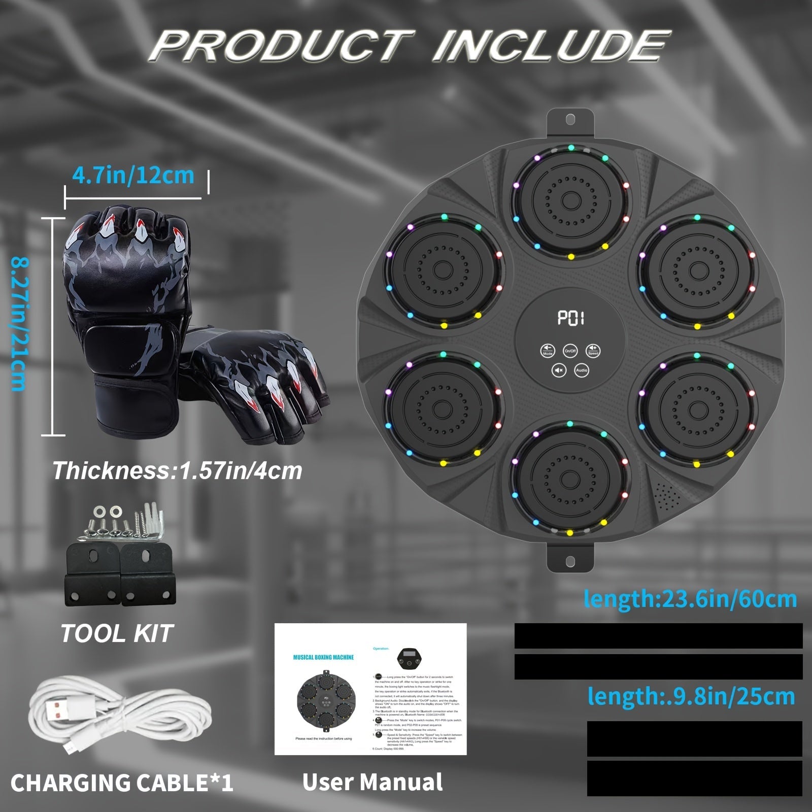 Train smarter at home with the  Light Boxing Trainer — a wall-mounted punching pad designed for all skill levels. Featuring light-up targets synced to music, this interactive boxing machine boosts your reflexes, cardio, and fun at the same time. It’s equipped with a USB-powered, rechargeable lithium battery (18650 series), making it wireless and convenient to install anywhere in your workout space.