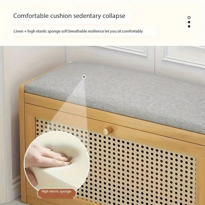 Elegantly crafted bamboo shoe rack bench for stylish entryways.