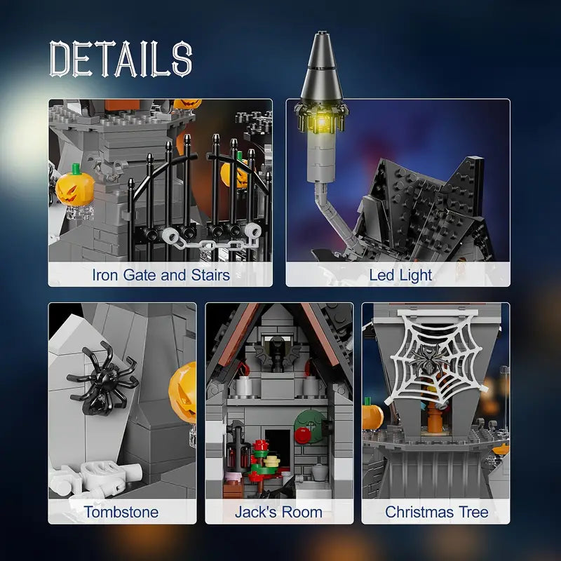 Bring spooky creativity to life with this 1000-piece haunted house building blocks set, complete with LED lights for a thrilling Halloween adventure.