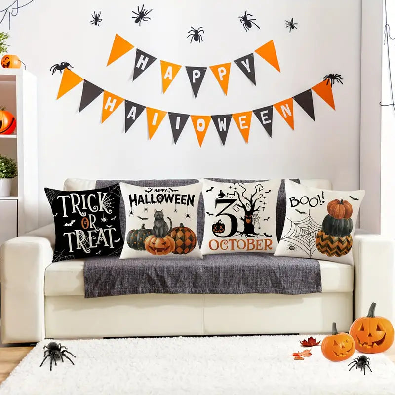 Transform your home into a Halloween haven with our vintage-style pillow covers featuring spooky pumpkin, cat, spider web, and bat designs. Perfect for adding festive flair to any room!