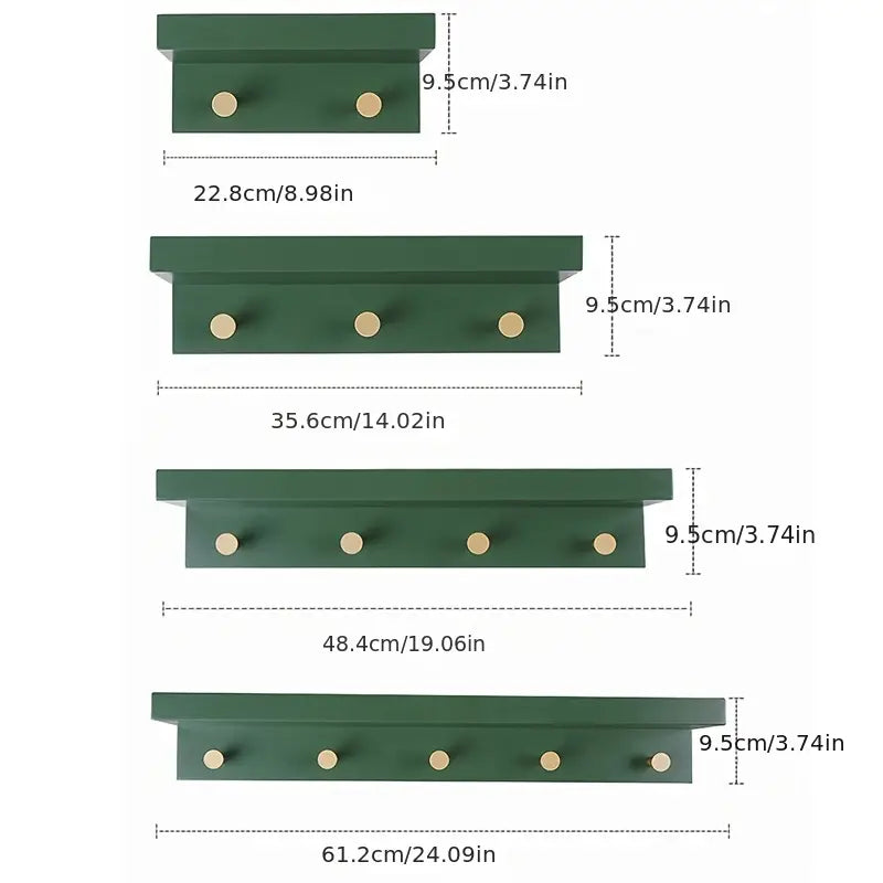 - The floating shelves come with 2/3/4/5 hooks, perfect for organizing your bathroom, kitchen, bedroom, living room, plant nursery, books, laundry, and more.