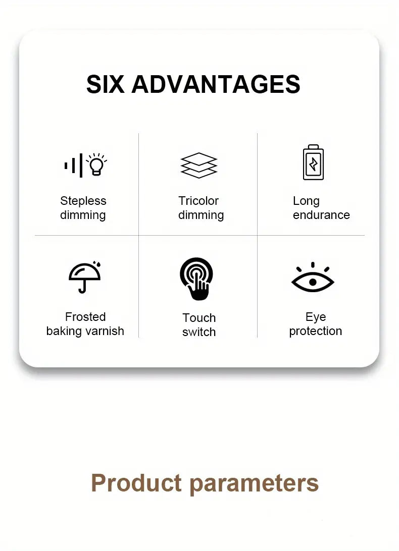 - High-end luxury Long press stepless dimming design, choose the right light brightness