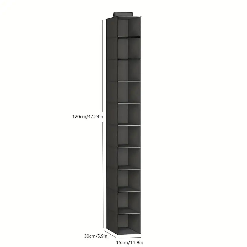 - With 10 shelves and 4 drawers, this hanging closet organizer bag provides ample space to store clothes, underwear, and other accessories.