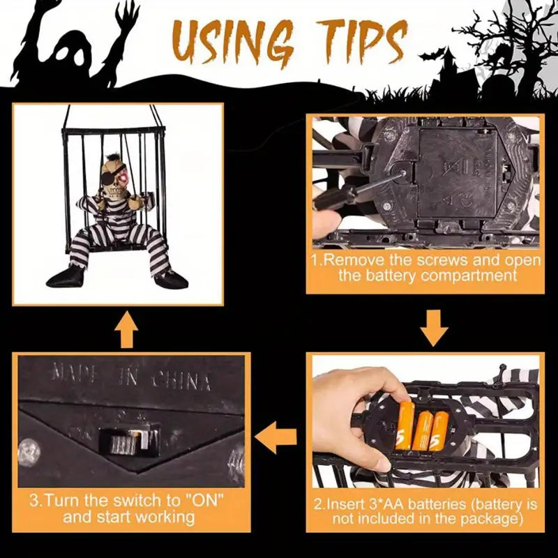 - [Battery Powered]: Halloween horror cage toy is battery powered, battery mounted, great horror ambient maker, fun Halloween toy.