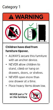 • NEVER allow children to stand, climb or hang on drawers, doors, or shelves.