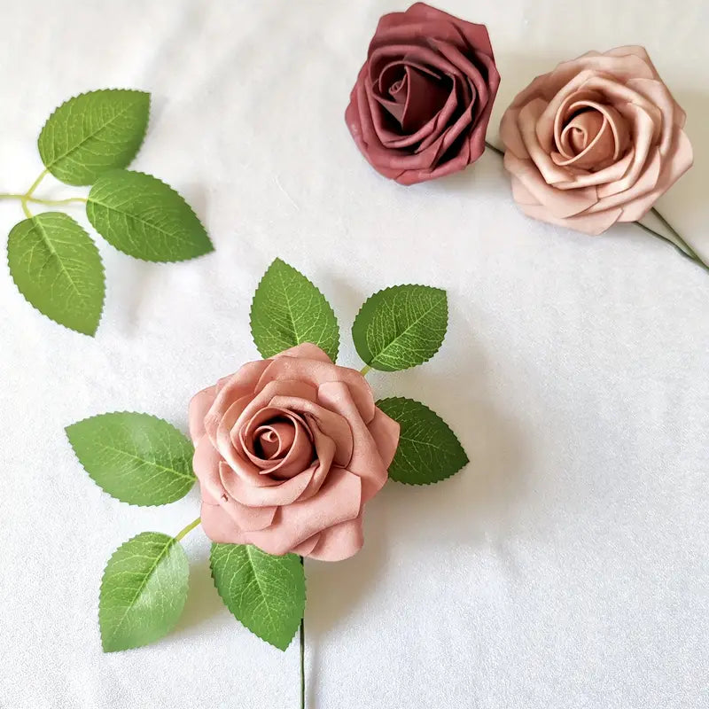 Description: Transform any setting with the charm of these 25 stunning champagne red artificial rose flowers. Individually crafted to emulate the beauty of real roses, these lifelike blooms bring an aura of elegance and sophistication to your space without the worry of wilting or upkeep.