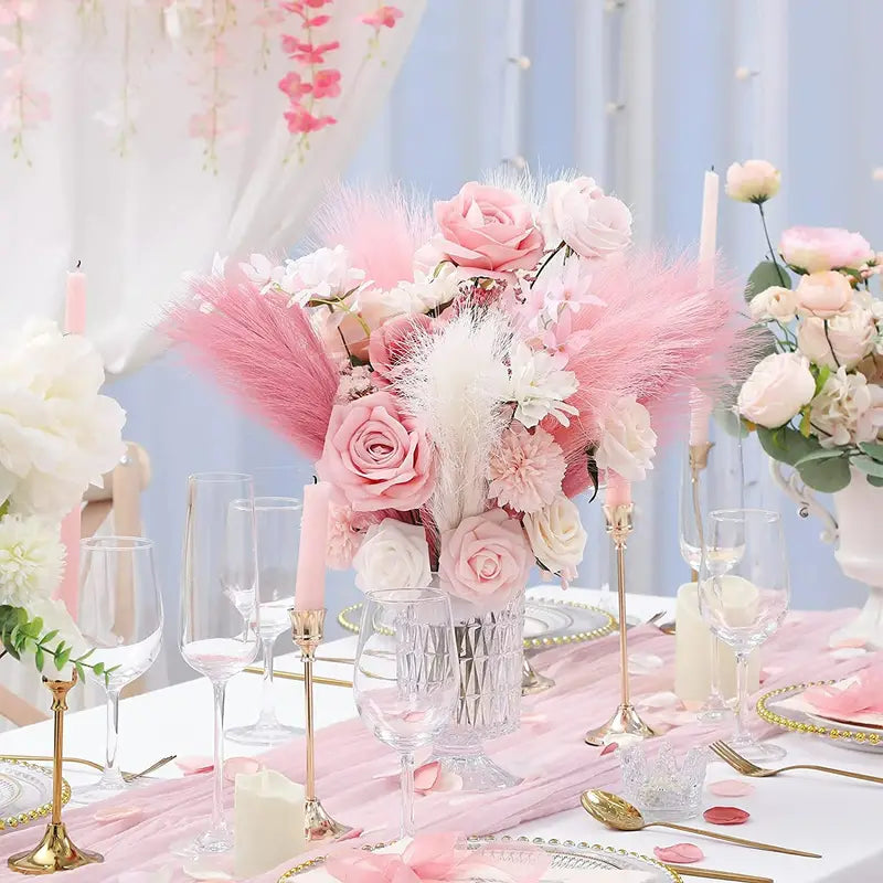 Description: Enhance your space with the ethereal beauty of our Artificial Pampas Grass Set! This set of three lifelike stems—featuring Cream, Blush, and Pink gradient colors—measures approximately 43.18cm (17 inches) in length, exuding a captivatingly romantic aura perfect for your home or event decor needs.