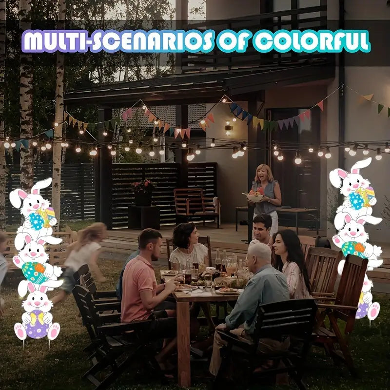 Crafted from durable plastic, these bunnies are built to withstand the elements, ensuring they remain a delightful part of your outdoor decor for seasons to come. The pole mount design makes installation a breeze, allowing you to effortlessly place them in your lawn for a festive and amusing display.