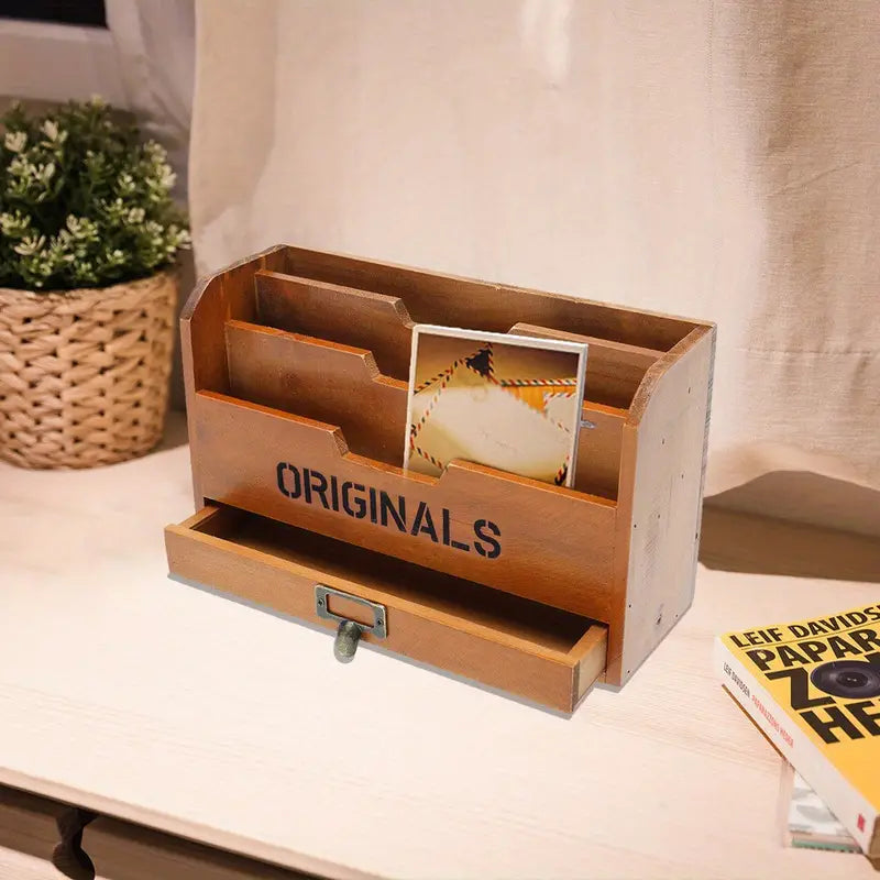 Description: Upgrade your office organization with our Desktop Wooden Vintage Letter Rack. This charming and functional piece brings a touch of vintage style to your workspace, making it a lovable addition to any home or office.