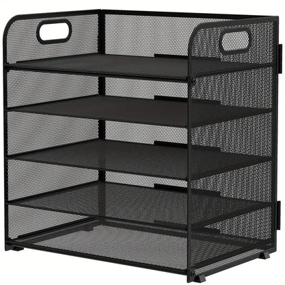 Black Mesh Desktop File Organizer - 5-Layer, Portable and Sleek Design