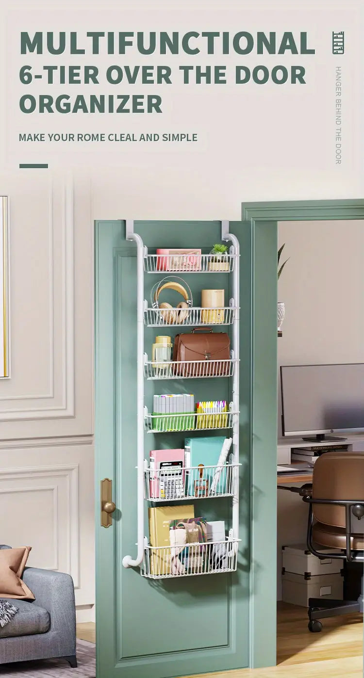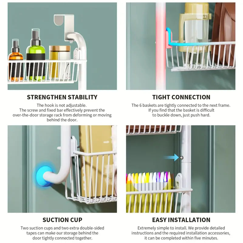 - Space-Saving Design: With 6 tiers (4 small and 2 big baskets), this over-the-door organizer expands your pantry storage effortlessly.