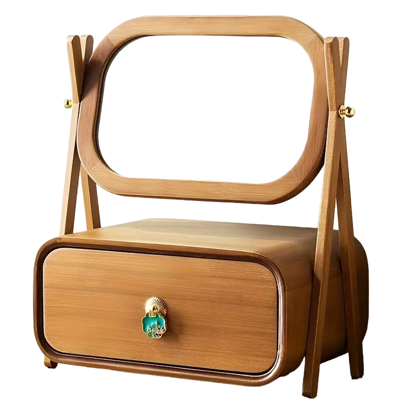 Description: Enhance your daily makeup routine with our Classic High-Definition Makeup Mirror with Drawer. This creative desktop mirror not only provides crystal-clear reflection but also offers a practical storage solution with its built-in drawer. Crafted from premium wood, this mirror adds a touch of sophistication to your vanity decor.