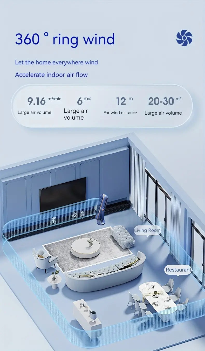 - 720° Surround Air Blower: Experience comprehensive cooling with a wide airflow range.