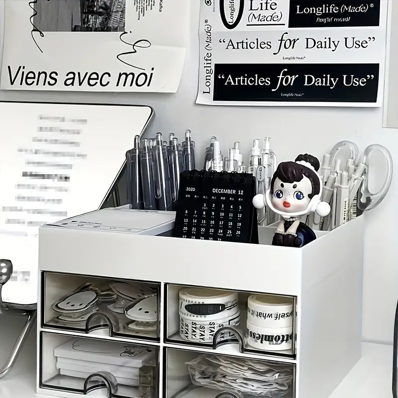 White Acrylic 4-Drawer Desktop Organizer with Open Tray Top
