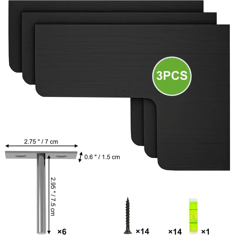 Description: Upgrade your home decor with these Contemporary Black Corner Floating Shelves. Designed with a sleek and modern aesthetic, these shelves offer a practical storage solution while enhancing the visual appeal of any room. The invisible bracket design creates a clean and sophisticated look, making these shelves appear as if they're floating on your walls. Crafted from high-quality materials, these shelves are built to last and capable of holding a variety of items securely.