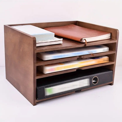 Vintage Solid Wood A4 Multi-layered File Organizer Box Rack