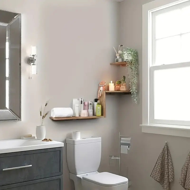 - Rustic Appeal: Add warmth and character to any room with these wooden corner shelves.