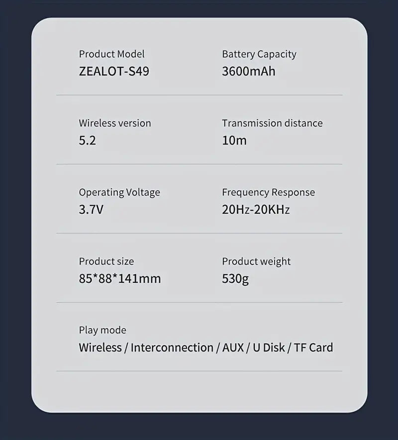 Compatible with a range of devices via Bluetooth, including mobile phones, tablets, and TVs, the S49 ensures seamless connectivity wherever you are. And with its USB charging capability, you can conveniently recharge the speaker on the go.