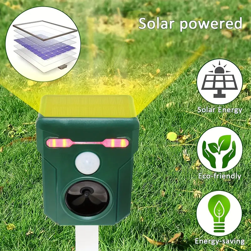 Ultrasonic Solar Animal Repeller with LED Lights & Motion Sensor