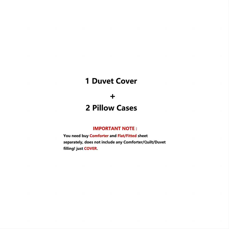 - Set includes 1 duvet cover and 2 pillowcases (without core)