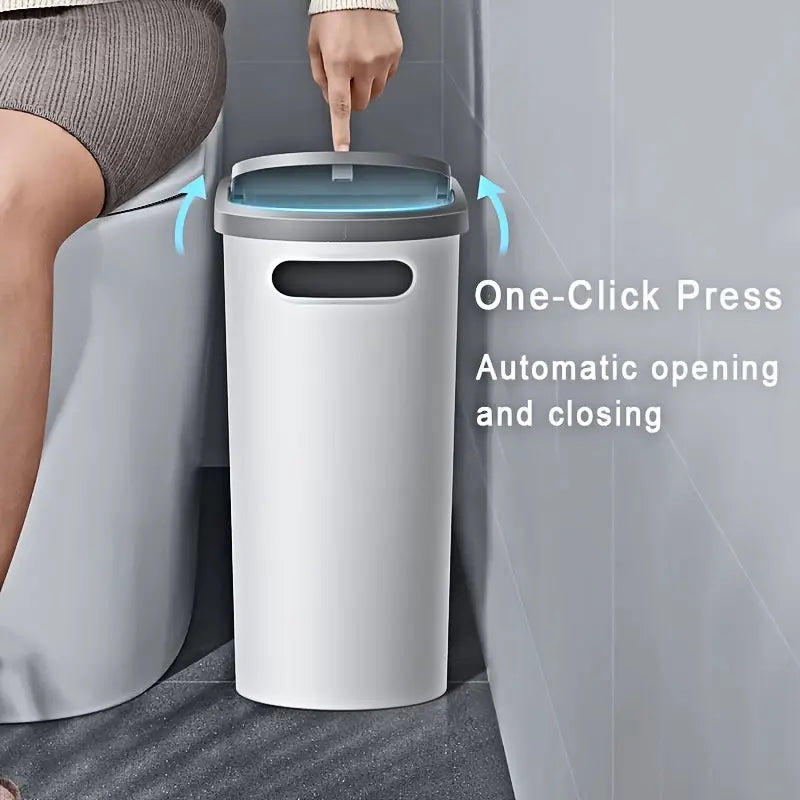 Upgrade your bathroom with this innovative Press Type Trash Can! With its creative slit design and large capacity, it's perfect for keeping your space clean and organized.