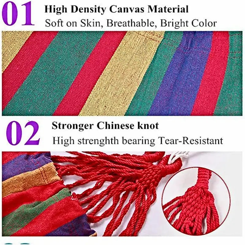 Upgrade your outdoor experience with our versatile and durable camping hammock. Whether you're camping in the wilderness or lounging in your backyard, this hammock is sure to become your favorite relaxation spot.
