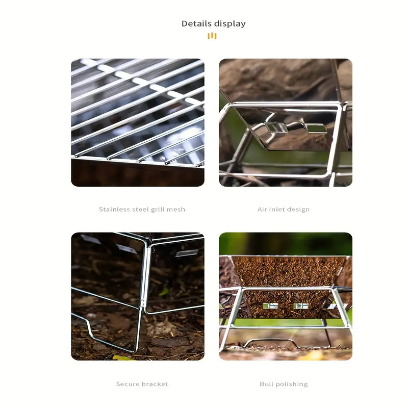 Equipped with a 201 stainless steel baking mesh, it ensures uniform heat distribution, allowing you to cook your favorite meals to perfection. Elevate your outdoor cooking experience with our Hexagonal Stainless Steel Wood Stove - your go-to solution for delicious meals on the go.