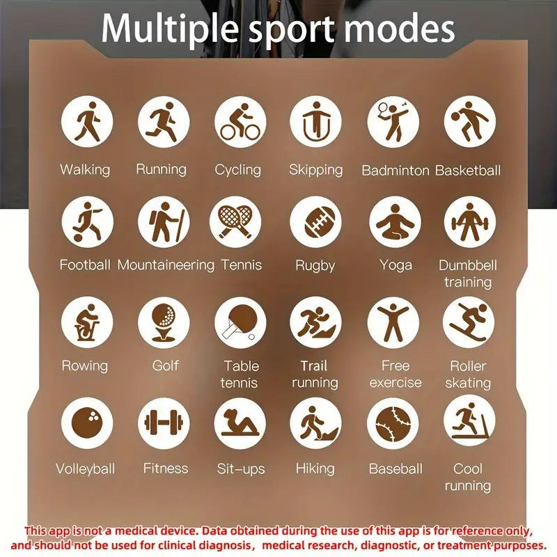 - Fitness Tracker: Track steps, calories, and distance. Includes multiple sports modes such as walking, basketball, mountaineering, running, cycling, and more.