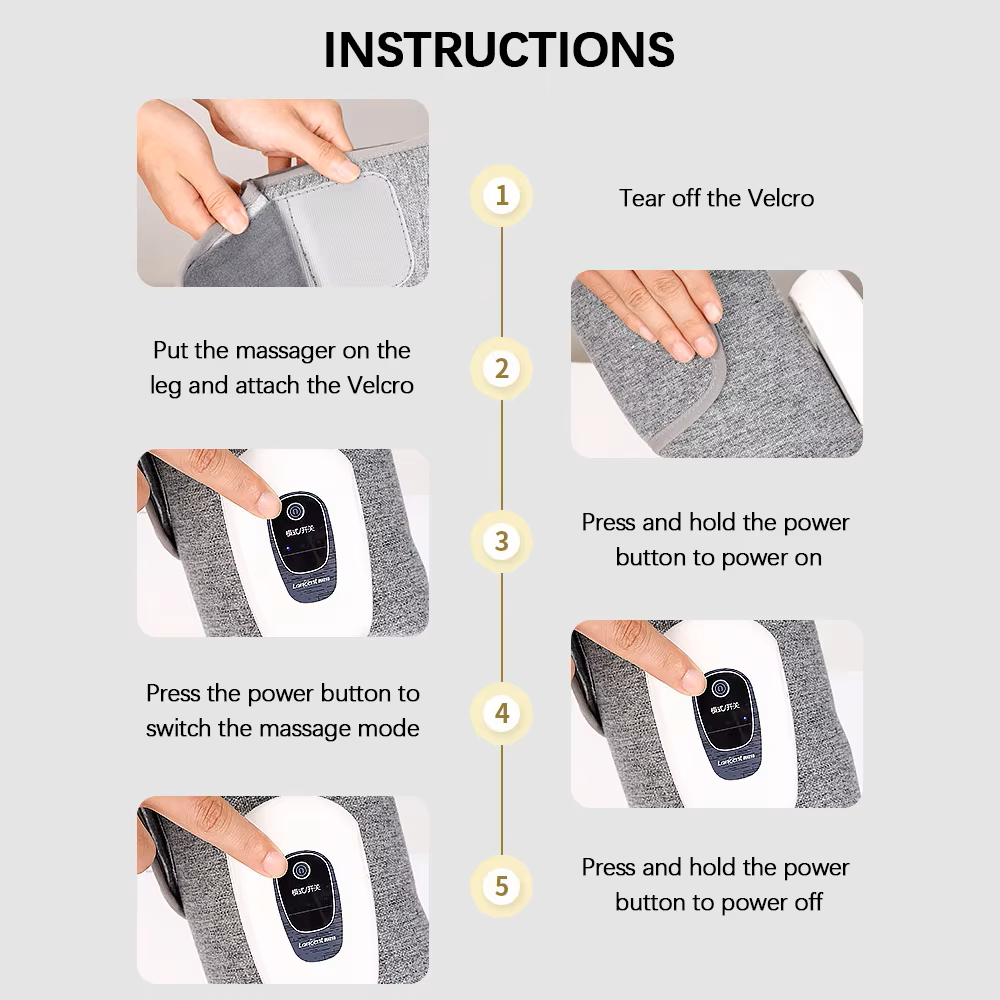Powered by a USB rechargeable lithium battery, this leg massager is both portable and convenient. With its user-friendly design and easy-to-use controls, you can enjoy a professional-grade massage at home, in the office, or even on the go.