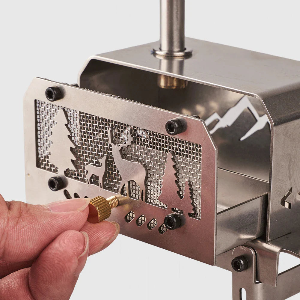 Perfect for diffusing essential oils, warming small pots of tea, or simply adding a decorative and functional piece to your home or campsite, this stove features a charming chimney that gently disperses heat or aroma. The adjustable legs offer customized height, and the sleek silver finish complements any decor. Whether you're creating a cozy vibe at home or enhancing your outdoor gear setup, this versatile stove brings warmth, fragrance, and style wherever you go.