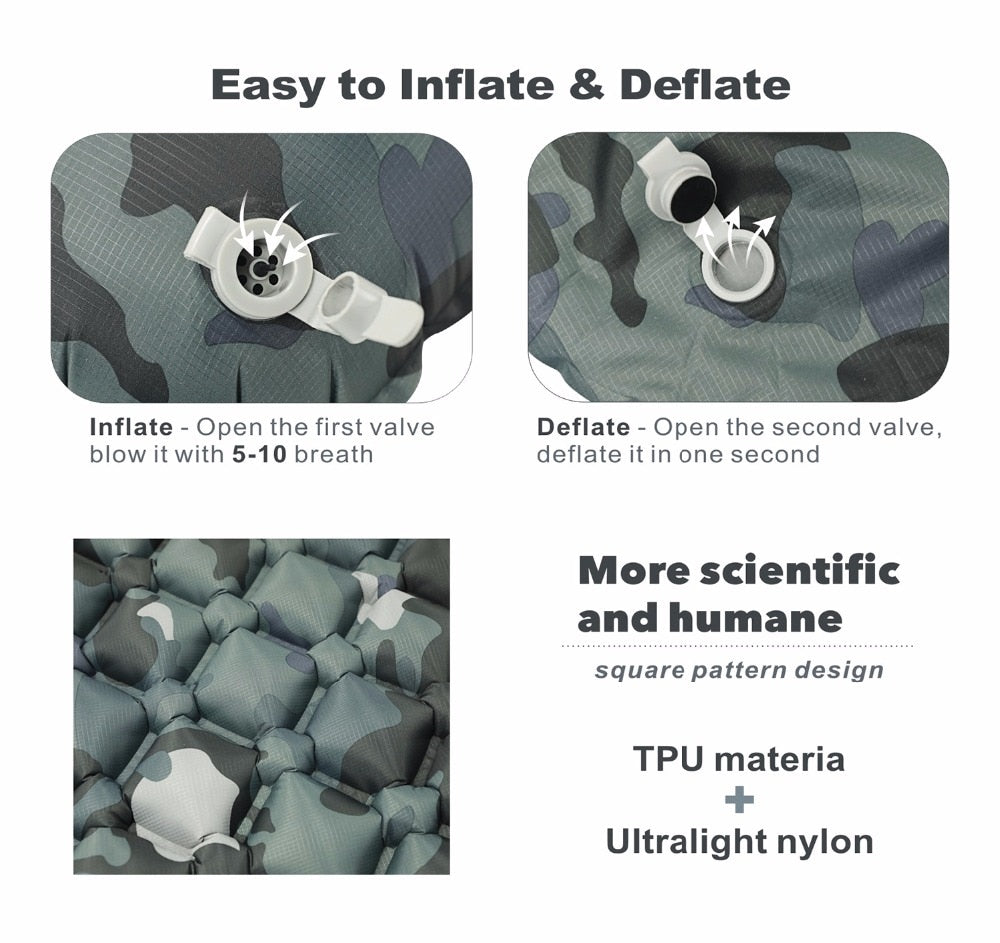 Outdoor Sleeping Pad Camping Inflatable Mattress with Pillows Travel Mat Folding Bed Ultralight Air Cushion Hiking Trekking