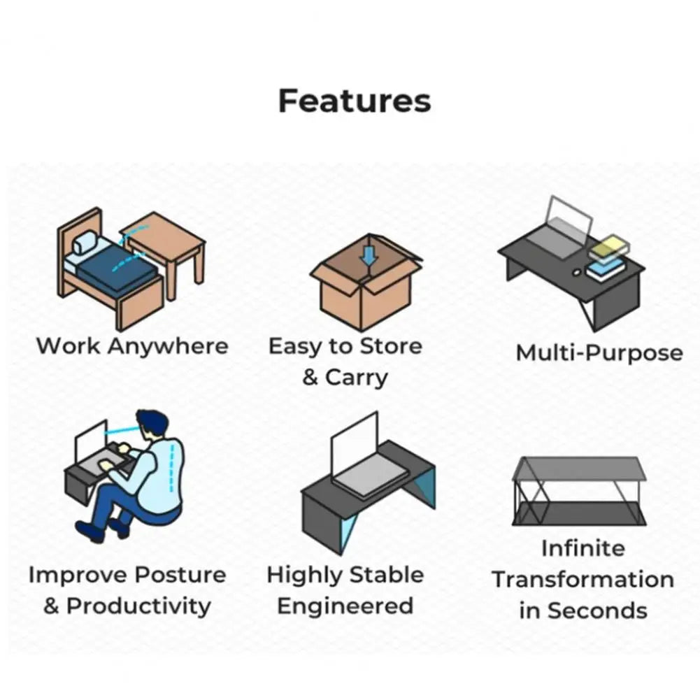 Lap Desk & Laptop Stand Combo: Provides the functionality of both a lap desk and a laptop stand, offering comfort and improved posture for users.