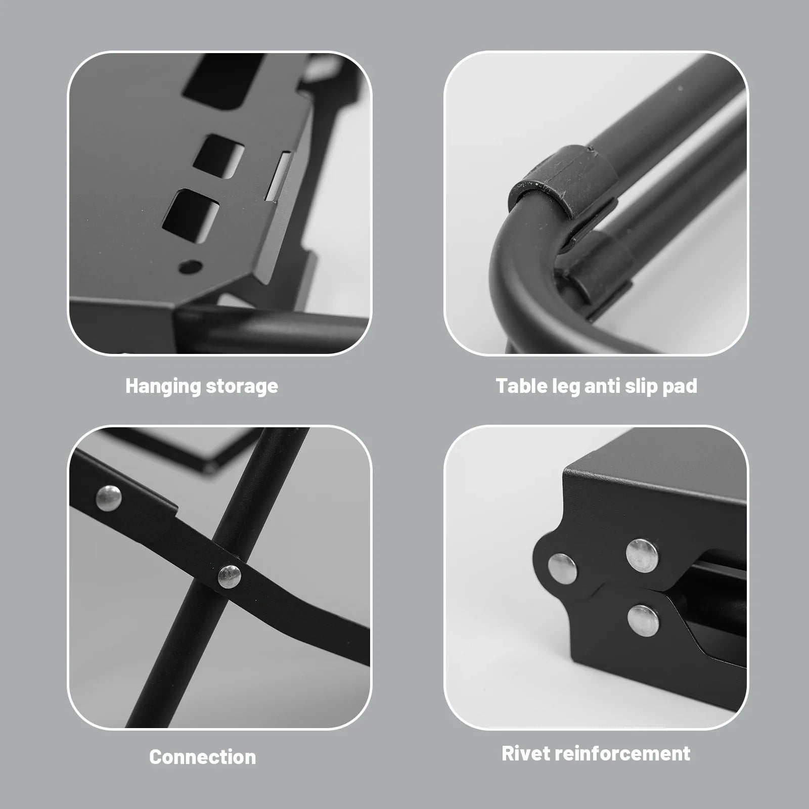 A standout feature is its hollowed edge design, allowing you to conveniently hang utensils, bags, lanterns, or other accessories, keeping your surface clear and your essentials within reach. Whether you're prepping meals, organizing gear, or just enjoying a coffee by the tent, this table is the rugged, reliable surface you didn’t know you needed on your next outdoor adventure.
