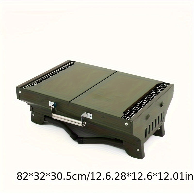 Grill anywhere with the  Portable Folding Charcoal Grill, crafted with food-grade metal to ensure safe outdoor cooking. Its compact design folds flat, making it easy to carry and store. The army green finish adds a rugged touch, perfect for camping, backyard BBQs, and picnics.