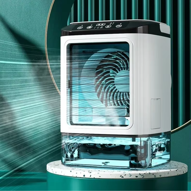 Experience powerful and refreshing cooling with the Portable Air Cooler Fan, featuring dual spray ultrasonic atomization for efficient cooling. With three wind speed levels, a 900mL large water tank, and a built-in ice box, this air cooler ensures long-lasting, enhanced cooling for any space.