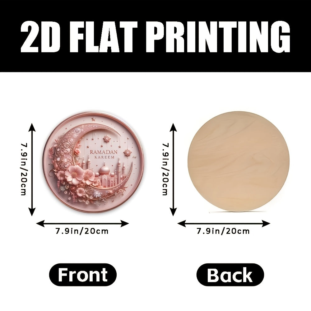 Celebrate Ramadan with the elegant Ramadan Kareem 2D Wreath Wall Hanging Sign. This classic pink sparkling wreath is designed to enhance any room, adding a festive touch to your home. Made from durable manufactured wood, it’s a versatile wall art that can be used for various occasions, from Ramadan and Eid to spring decor. Refer to the image for dimensions and design details.