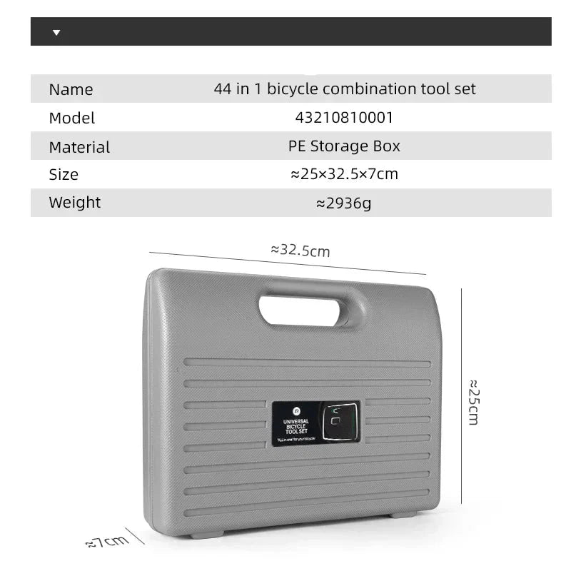 Comprehensive Kit: 44 essential tools for drivetrain, tire, brake, and frame adjustments