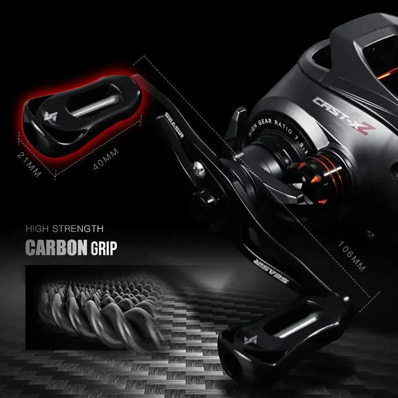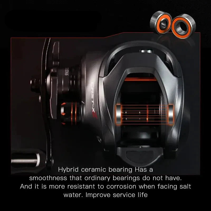 Equipped with a 9-piece N52 magnetic braking system, the Cast X2 delivers unrivaled control and minimal line backlash. A robust 9KG drag system, built with carbon fiber washers and brass gears, offers the stopping power needed for larger fish. The lightweight carbon fiber handle, ergonomic grip, and responsive drag clicker enhance comfort and feedback, while the tapered guide ring ensures longer casts with less resistance. Whether you're a weekend warrior or tournament angler, the Cast X2 is built to perform—cast after cast.