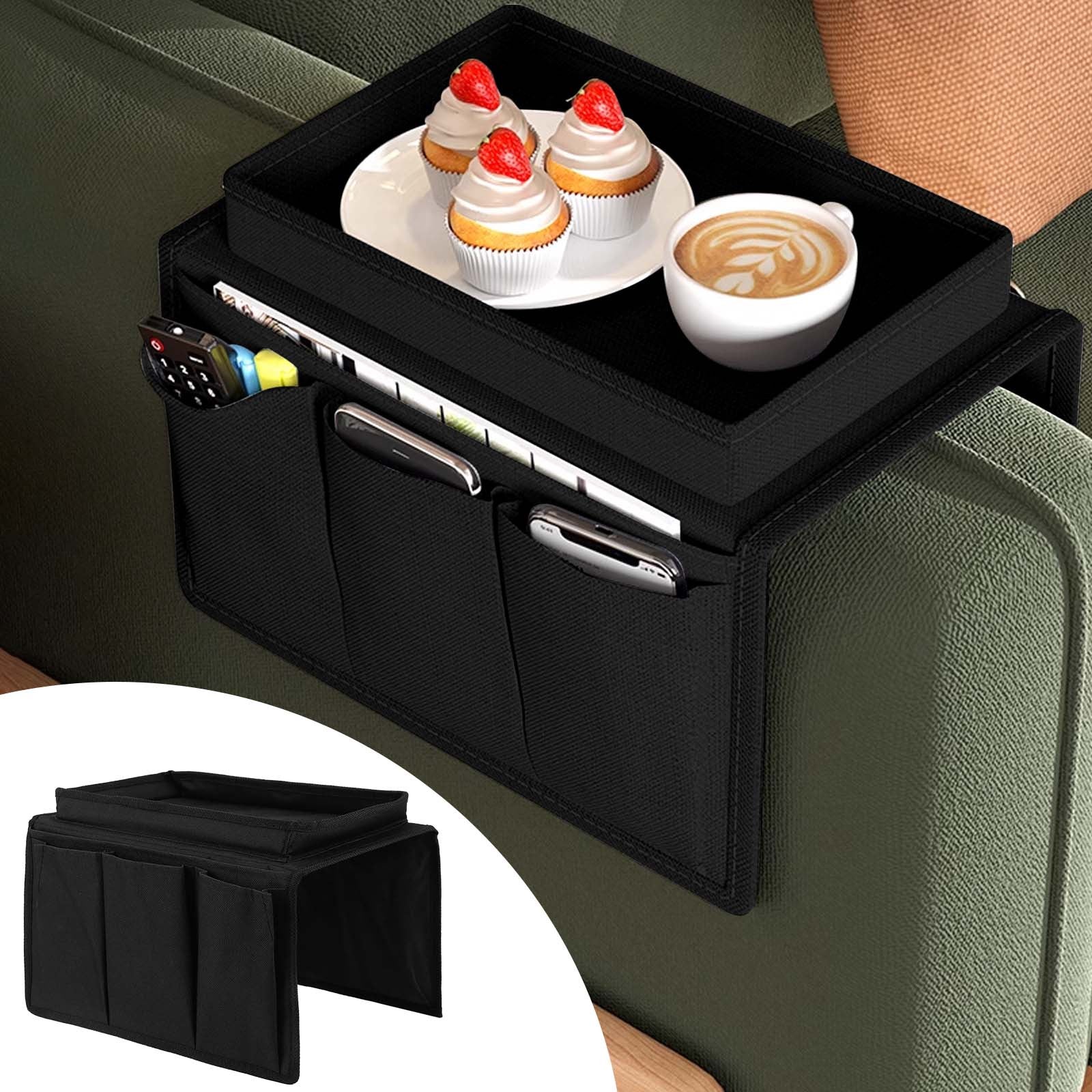 Sofa Armrest Organizer with Tray & Storage Pockets