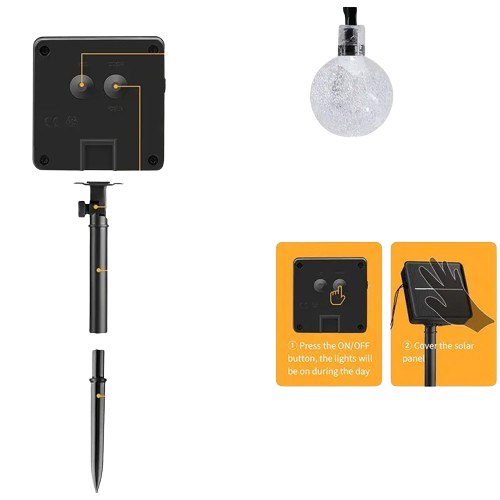 Description: Elevate your outdoor decor with these Solar Crystal Globe String Lights! Perfect for Halloween festivities, these lights create an enchanting atmosphere with their warm and inviting glow.