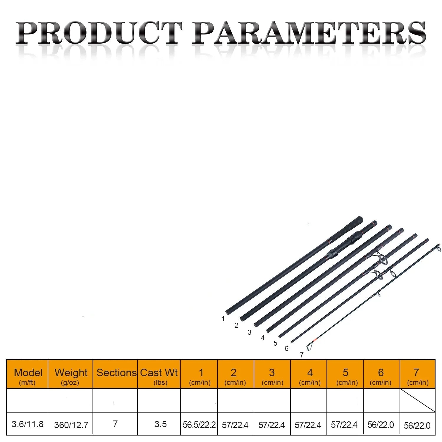 Whether you're on the go or casting from your favorite local spot, this 3.6M Portable Carbon Fiber Spinning Carp Rod delivers power, precision, and portability. Designed with a 7-section collapsible structure, it easily fits into your travel gear while offering the strength and sensitivity of a full-sized rod. Crafted from 99% high-quality carbon fiber, this rod is ultra-light yet built to handle lure weights from 30g to 120g—ideal for targeting medium to large carp and other freshwater or inshore saltwater species.